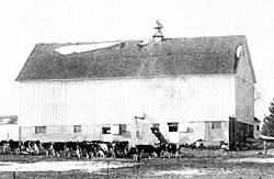 On November 20, 1994 the barn burned from the spontaneous combustion of damp corn stover (stalks) that had been blown into the loft for use as winter bedding. The building erupted in smoke and flames during lunchtime, and the farm's new owner, Dave Topp, and his hired man saved the livestock by quickly releasing the cattle and chasing them from the basement. The volunteer fire department was unable to save the huge wooden structure with its loft full of tinder dry hay.